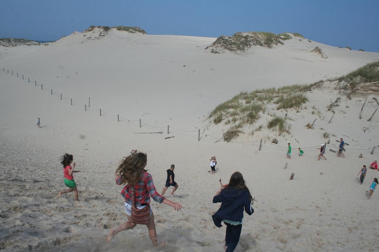 2. Polska Sahara - Wycieczka do Słowińskiego Parku Narodowego. Wydmy ruchome z Łącką Górą (42 m.n.p.m.) - światowy rezerwat biosfery. Wycieczka obejmuje przejazd kolejką Łeba-Rąbka, spacer do Wydm Ruchomych (1800 m), oraz powrót do Rąbki, następnie  kolejką do Łeby,