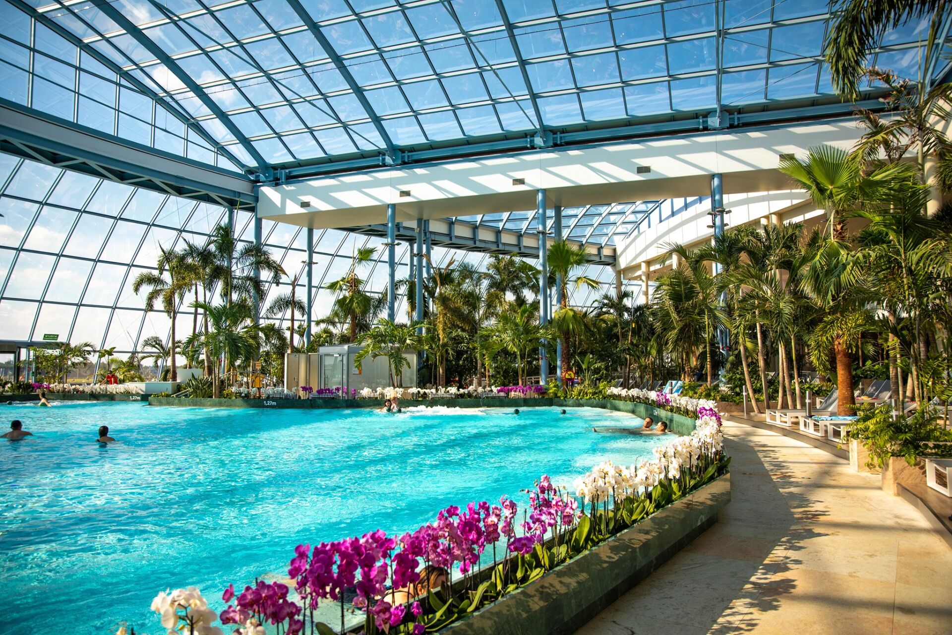 Suntago to prawdziwe miasteczko rozrywki i tropikalna wyspa. Znacie Tropical Islands pod Berlinem ? To coś w tym stylu. Na terenie Suntago znajdują się cztery strefy tematyczne - Jamango Wodna Dżungla, Crocodile, Relax Suntago oraz Saunaria Suntago a w nich m.in. 32 zjeżdżalnie wodne, basen z falami, relax z tzw. dziką rzeką, wodny plac zabaw, maszyna Surf-Air, która umożliwia naukę surfowanie pod dachem, 3 baseny solankowe Dead Sea, 5 basenów witalnych, wypełnionych wodą z minerałami.  Jamango - Jedyna w swoim rodzaju wodna dżungla pełna atrakcji i niespodzianek na światowym poziomie Aż 32 różne zjeżdżalnie to gwarancja niezapomnianych wrażeń! Odważysz się na zjazd najdłuższą – 320 metrową zjeżdżalnią ? To tak jakby sunąć w dół z wysokości wieży Eiffla. Tropikalny, termalny a może gigantyczny basen z falą? Aż 18 różnych basenów o powierzchni 3500 metrów kw. dostarczy wrażeń każdemu miłośnikowi wodnej zabawy! A to wszystko w otoczeniu 700  palm przywiezionych z egzotycznych zakątków świata,