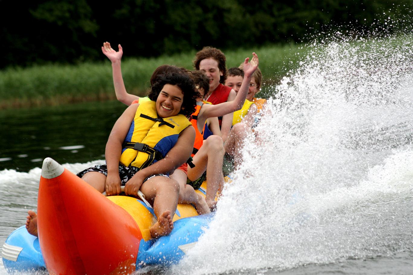 Mazury to raj dla miłośników wody, kąpieli i sportów wodnych. Specjalnie dla nich przygotowaliśmy propozycje zabaw pod nazwą „Wodne Szaleństwo”, w skład której wchodzi przejażdżka motorówką, jazda na „bananie” oraz kole holowanym za motorówką.