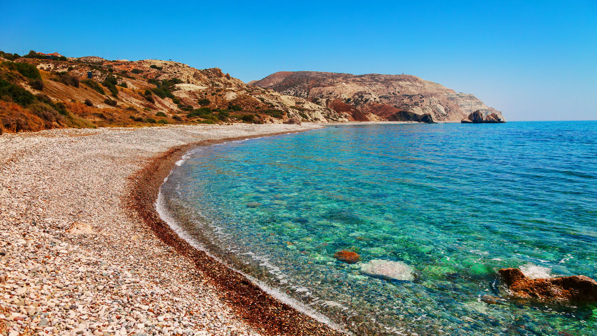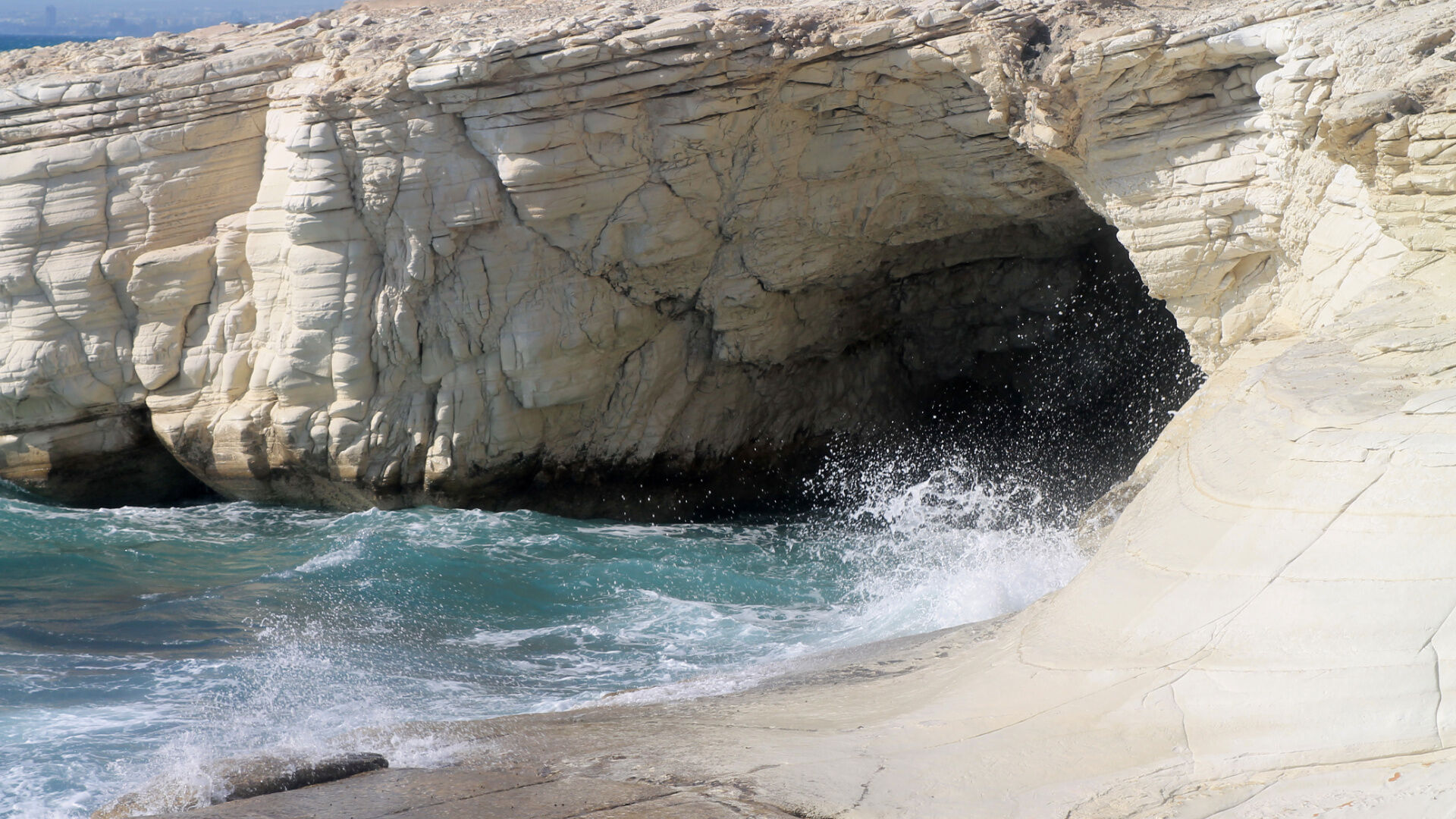 Wrażenia krajobrazowe, w szczególności Skała Afrodyty, widoki plaż, krajobraz wybrzeża i góry Cypru.